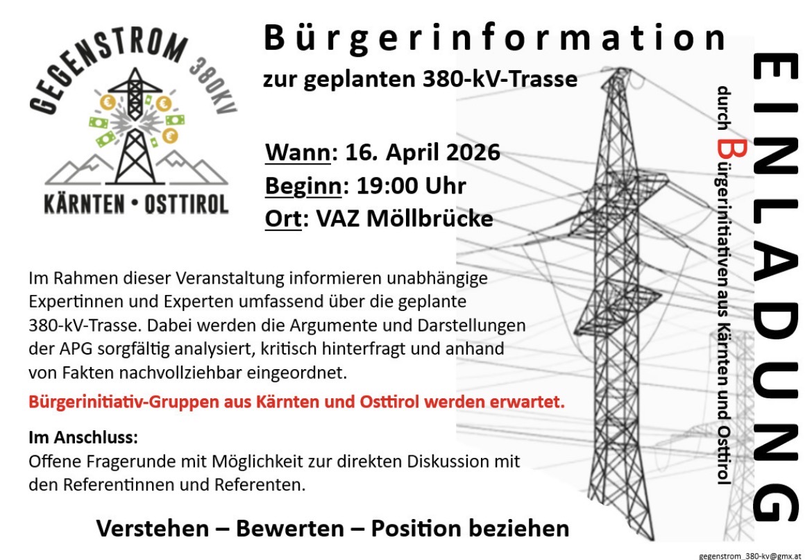Bürgerinitiativgruppen aus Kärnten und Osttirol werden erwartet
